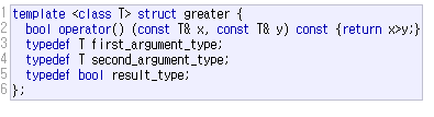 기본으로 functional 헤더에 greater, less 구조체같은 비교연산자 구조체가 제공된다.